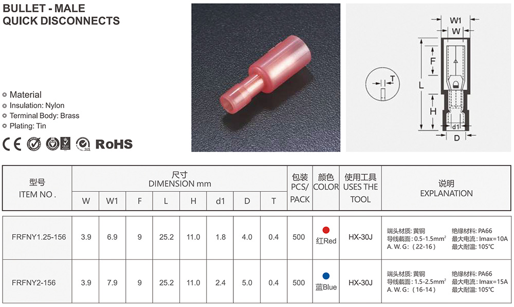 圓形預絕緣端頭(RV型)