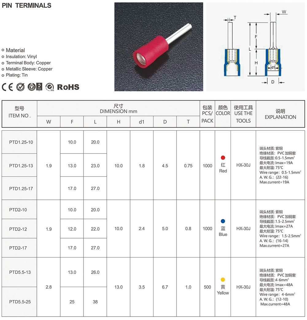 雙壓接式針形預絕緣端頭(TZ-JTK型)