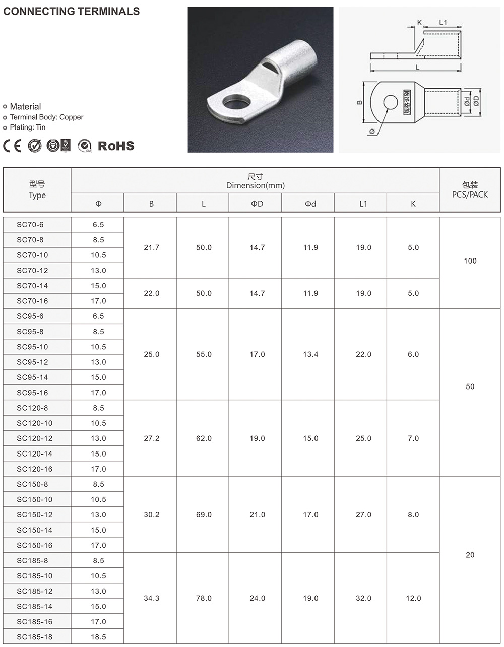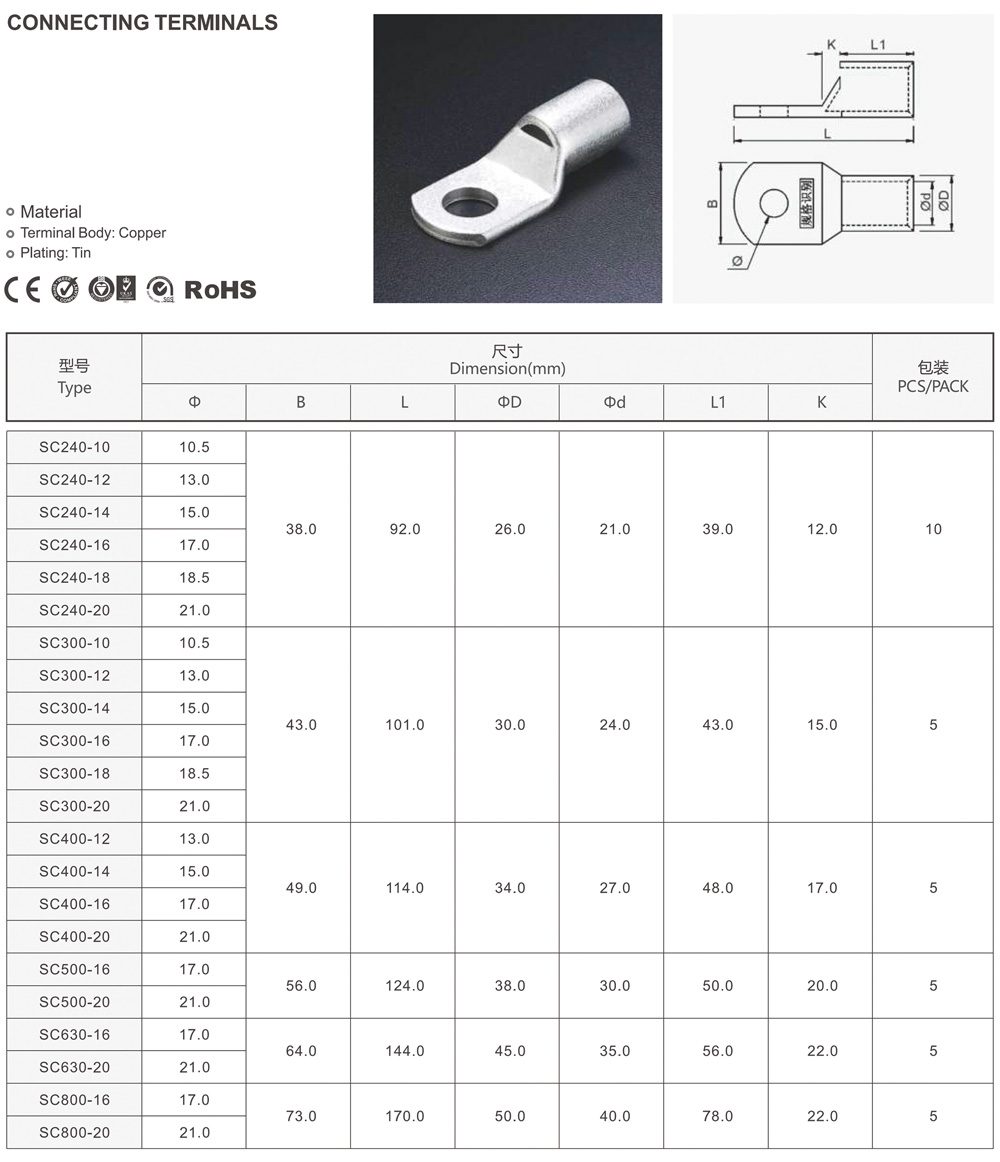 主要生產符合國家標準的各類電纜冷壓接線片及電力配件