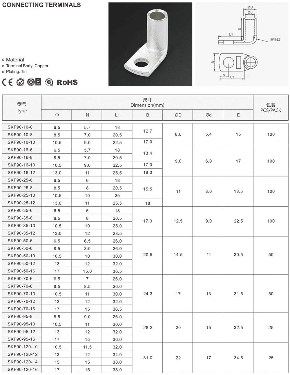 主要生產符合國家標準的各類電纜冷壓接線片及電力配件