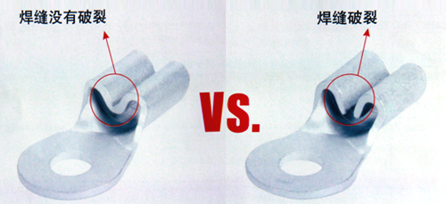 七、公司擁有精湛的焊接技術,精選優質焊接材料,在裸端子尾部接縫處實施銀焊,生產出高品質的焊接端子,確保壓著后不會產生破裂,及時在惡劣的使用環境下,仍能擁有強勁牢靠的拉拔力,且經過低溫熱處理,以增強抗拉強度并確保物理性能指標。